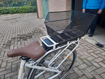 Vendo bici elettrica, modello Cinzia, per inutilizzo. Perfettamente funzionante. Con batteria e cavo per ricaricarla, come in foto, cestino compreso. Luce anteriore non funzionante.