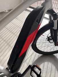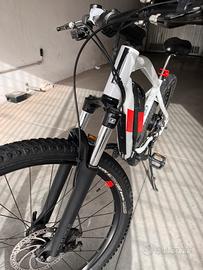 Vendo Bici MTB elettrica a pedalata assistita E-ST 100 bianco-rosso 27,5”- 380 Wh, taglia M con sellino regolabile. Motore elettrico con diverse modalità di assistenza. Batteria con ottima autonomia. La bici è in ottimo stato generale. Presenta solo qualche piccolo segno, ma niente che influisca sulle prestazioni. Sono inclusi: cavalletto, luci anteriori e posteriori e il campanello.
