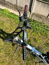 Vendo bicicletta elettrica pieghevole velocità massima 30 con cambio marce manuale ,4 livelli di pedalata assistita ,carica 15km full gas con blocco velocità massima munita di ricarica batteria bicicletta in buone condizioni usata per casa lavoro