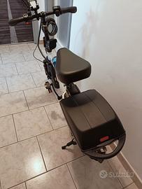 bici elettrica DYU pieghevole 14 pollici accessoriata di bauletto con chiusura a chiave, borraccia , specchio retrovisore, porta cellulare, lucchetto. la bici e prevista antifurto che suona e lampeggia, telecomando per inserimento antifurto. bici usata poco 220 kl con attrezzi per riparare eventuale foratura.