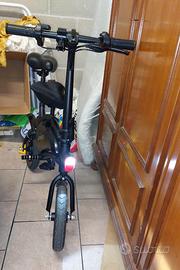 Vendo bici elettrica pieghevole marca DYU. Con tasto illuminazione faro e stop, freno a disco, cavalletto, clackson e Display GPS per velocità tutto di serie. È stato montato un doppio sellino per chi ha piccoli da portare in passeggio. Batteria da sostituire. Trattabile