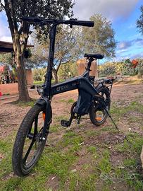 Vendo bici elettrica pieghevole DYU T1 comprata la scorsa estate per il tragitto casa lavoro. Ha un motore di 250w ed una batteria da 36v posizionata nella parte centrale sotto al sellino, vantaggio che le permette maggiore protezione dalle vibrazioni. Ha un sensore di coppia per un’assistenza alla pedalata fluida, un design ergonomico e sospensioni avanzate. Autonomia fino a 55km e sistema di sicurezza con chiave. È dotata di portapacchi posteriore, luci anteriori collegate alla batteria e posteriori ricaricabili, telaio in lega di magnesio senza saldature, cambio Shimano a 7 velocità, freni a disco anteriori e posteriori, sellino ammortizzato, robusto portapacchi e tasto boost che aiuta anche nelle salite più dure. La bici non presenta alcun difetto e non ha mai dato problemi .Vendo esclusivamente per passaggio a modello più tecnico da montagna. Prezzo leggermente trattabile. Disponibile per qualsiasi prova