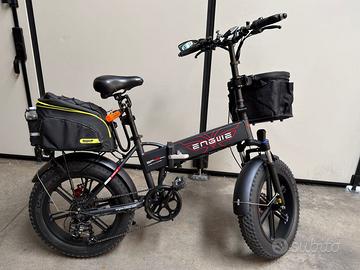 Bici elettrica PIEGHEVOLE ENGWE EP-2 PRO 750W 48v 13Ah Utilizzata per meno di 1000km. Tenuta maniacalmente - condizioni ottime. Altre foto/dettagli disponibili su richiesta. Motore potente per affrontare anche le salite senza sforzo. Comodissima Fat tire bike con motoriduttori brushless ad alta velocità da 750 W e controller brushless intelligente da 48 V, può aiutarti facilmente a viaggiare 45 km/h (modalità elettrica). 3 modalità di guida e 5 livelli di potenza Attualmente DEPOTENZIATA per rispettare limiti velocità/potenza a norma di legge - ma sbloccabile tramite programmazione. OPTIONAL Installati: Ammortizzatore idraulico sotto sella per un confort ottimale su terreni disconnessi e porfido. Pinze freni pneumatiche per maggiore forza frenante. Disco freno anteriore maggiorato. Borsa molto capiente posteriore Frecce direzionali e di posizione laterali manubrio. Antifurto sonoro con sensore movimento - con radiocomando. (Borsa/trasportino su manubrio non inclusa) Specifica: Colore Nero Velocità massima 25km/h (sboccabile a 45 km/h) Chilometraggio massimo 60 km (modalità elettrica) 120 km (modalità assistita) Materiale del telaio Lega di alluminio Il motore Motoriduttori brushless ad alta velocità da 750 W Deragliatore Cambio Shimano7 velocità Luci LED anteriori e posteriori Guida pedalata assistita - sbloccabile puro riding elettrico con acceleratore. Forcella anteriore Assorbimento degli urti confortevole in acciaio al carbonio ad alta resistenza Pneumatico 20" x 4.0"Fat Tire Capacità di carico 150 kg Batteria 48V 13Ah agli ioni di litio Tempo di carica Circa 6 ore Le effettive prestazioni possono risentire del peso trasportato e del fondo stradale. Valutabile spedizione.