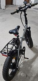 Vendo bici elettrica pieghevole VIVO R1 in ottime condizioni, perfettamente funzionante e pronta all’uso. Modello con ruote fat (larghe) ideale per città, sterrati e strade sconnesse. Molto comoda anche per chi cerca stabilità e comfort. Caratteristiche principali: Motore elettrico con pedalata assistita Batteria removibile con buona autonomia Display per gestione livelli di assistenza Cambio Shimano Freni a disco Sospensione anteriore Telaio pieghevole (salvaspazio) Portapacchi posteriore Luci anteriori e posteriori Accessori inclusi: Supporto smartphone da manubrio Borsa posteriore portaoggetti Alimentatore originale Euro 650 leggermente trattabili. Per favore No perditempo No affaristi No scambio Grazie