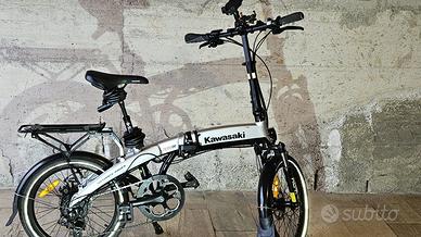 Vendo bicicletta e-bike pieghevole elettrica a/o pedalata assistita Kavasaki modello Kbaf20 E-Folding 20" in eccellenti condizioni compresa di batteria e carica batteria. Impostazioni di fabbrica a norma di legge per quanto riguarda potenza e velocità.