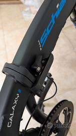 Vendo bici schiano galaxy Nuova completa di scatola imballaggio. Ripieghevole con batteria estraibile+ chiavi. SPOSTAMENTI SENZA SFORZO: Bici elettrica uomo e donna con motore posteriore ANANDA da 250W con 50Nm di coppia e pedalata assistita fino a 25 km/h LUNGA DURATA DELLA BATTERIA: bicicletta elettrica pieghevole con batteria da 36V 10.4Ah, 374.4Wh, rimovibile per ricarica ovunque, fino a 90 km in modalità ECO CARATTERISTICHE PREMIUM: Bici elettriche con cambio Shimano a 9 velocità, telaio in alluminio, freni a V, cerchi in alluminio e pneumatici da 20 pollici ACCESSORI INCLUSI: Bici elettrica con luci LED anteriori e posteriori, display LCD, campanello, parafanghi, copricatena, e sella Selle Royal per maggiore comfort MONTAGGIO E STOCCAGGIO FACILE: Le bici F.lli Schiano sono preassemblate al 98%. Misure da chiusa: 85x45x72 cm, facili da riporre e trasportare