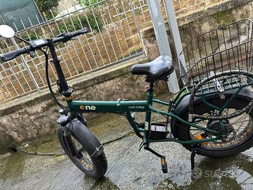 Bici elettrica The One. Batteria da 10Ah, 36v, in grado di sviluppare 360Wh, motore (come previsto per legge), da 250 W. Autonomia massima di 20-30 Km.