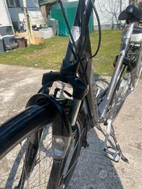 Vendo Bicicletta elettrica TREK modello T500 Navigator. La bici e la batteria sono in ottimo stato, cambio Shimano anteriore a 3 velocita e poteriore a 8. Luci inglobate nel telaio, lucchetto centrale, ammortizzatori anteriori, porta pacchi posteriore, manopole in cuoio, computer di bordo, cavalletto, campanello, manubrio regolabile con sgancio rapido, sella ammortizzata, pompa gonfia ruote. Prezzo trattabile