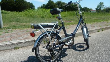 Vendo bici elettrica pieghevole,telaio in alluminio,ruote da 20".La bici è regolare da strada: motore 36 volt, 250 watt, 25 km/h. La bici è in buone condizioni,come si vede dalle foto. La vendo perchè ho venduto il camper. Non spedisco,preferisco consegna a mano,dopo vista e provata.