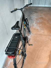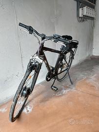 vendo bicicletta elettrica uomo, ruote 28, cambio 6 rapporti al posteriore, motore da 250 watt al mozzo posteriore, bicicletta a pedalata assistita in regola con il codice della strada, possibilità di impostare 3 velocità di marcia completa di batteria e caricabatteria. Batteria ancora ottima, capace di mantenere la carica. Autonomia della batteria 30 Km a velocità massima.