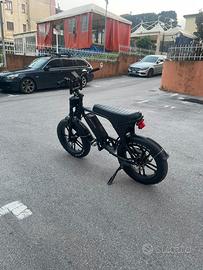 Bici elettrica V8 da 750W bloccata a 35km/h volendo si puo sbloccare a 50km/h . La bici ha pochissimi kilometri e ha due mesi di vita.la bici si presenta sensa acceleratore, ma anche quello si puó mettere volendo. Per maggiori info contattatemi. Insieme alla bici vi regaleró un sellino da agganciare alla bici, ed anche io caricatore.