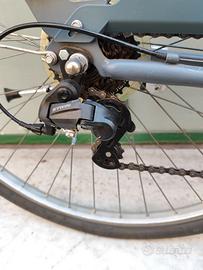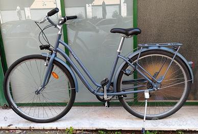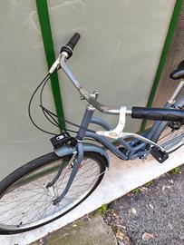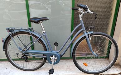 Bellissima bici da città unisex (telaio basso) con ruote da 28 pollici. Moderno telaio in acciaio molto robusto. Trasmissione a 6 rapporti con comandi rotativi. Freni V-brake e componentistica di ottima qualità. Ruote in alluminio, leggere e resistenti con gomme antiforatura. Cavalletto, portapacchi posteriore, carter e parafanghi. Luci anteriori e posteriori a led. La bici è seminuova ed è in ottime condizioni generali. E' stata appena revisionata e lubrificata in officina appositamente per essere messa in vendita. Non ci sono lavori da fare, si può usare immediatamente. Visibile a Roma in zona Stazione di Trastevere previo appuntamento. Non spedisco.