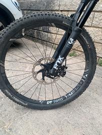 Come da titolo vendo Canyon Spectral carbon 8.0 in taglia L, per altezze da 1.75 a 1.86 Mountain bike in ottime condizioni. . Anno: 2017 Modello: Enduro/ All-Montain, Trail Ruote: 27,5 Telaio: Carbonio ad alta resistenza con passaggio cavi interno Escursione posteriore: 140mm Ammortizzatore post: FOX Performance DPS Forcella: FOX Performance 34 float Escursione forcella: 150mm Manubrio: Canyon H14 Rise AL 740mm Freni: Shimano Deore XT anteriore 200mm posteriore 180mm Leve freno: Shimano Deore XT Trasmissione: monocorona Comandi: Shimano Deore XT 11V Deragliatore:Shimano Deore XT Pedivelle: Crank brothers Corone: 26/36 Denti Cassetta: Shimano Deore XT 11X40 Denti, 11 Velocita Cerchi: DT Swiss Mozzi: DT Swiss Pneumatici: Continental Sella: Argon Reggisella: RockShox reverb Peso: 12,5 Kg Prezzo di listino 2018: 3899