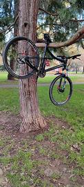 e una bici bio ammortizzata con una forcella da 120mm e un ammortizzatore da 80mm (nuovo) a deh freni idraulici a 2 pistoni (nuovi) cambio sram x5 nuovo davanti disco frenante da 160 mm, dietro da 180mm (e una rock Rider)