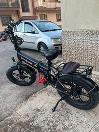 La bici ha pedalata assistita e accelleratore , fino 80 km di autonomia, ruote 20•4.