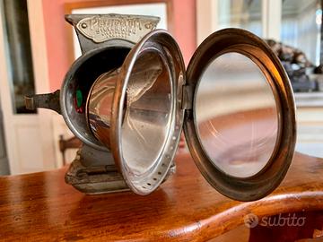 Fanale a petrolio Silver King Made in England inizio secolo scorso, completo in ogni sua parte, non pulito e nemmeno restaurato visibile in fotografia crepa nel corpo superiore, così come pure crepa nel vetro riflettente posteriore. Se sapientemente pulito la nichelatura esterna verrebbe a nudo, operazione lasciata a discrezione a seconda della finalità e utilizzo. Visibile a Brescia, spedizione ed imballo a carico del compratore. Non rispondo a messaggi e mail ma solo ed esclusivamente a contatti telefonici al 335-5366669