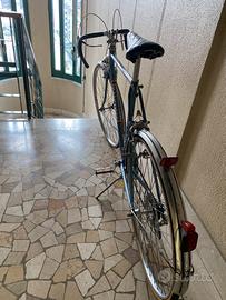 Bici epoca tedesca, condizioni perfette (restaurata da professionista) doppio freno alla francese, cambio al manubrio (10 rapporti), dinamo e luci funzionanti, parafanghi e blocco ruota posteriore. Compresa pompa dell'epoca (del valore di 30 euro). Qualsiasi prova.