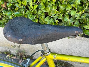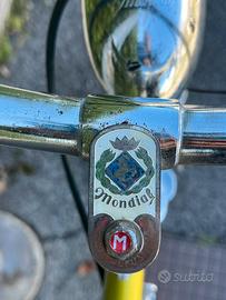 Cedo bellissima bici d’epoca anni 60 della famosa fabbrica MONDIAL . Bicicletta da uomo con ruote da 28 con ancora le sue gomme originali Clement Milano , parafango anteriore scomponibile , viti marchiate M ( mondial ) fregio anteriore , fregio al manubrio smaltato mondial , faro mondial , cambio campagnolo , cerchi in alluminio Marzonati , sella in cuoio , La bici è ferma da anni necessita di una revisionata e una pulita , Bici molto bella , manca solo il faretto posteriore Solo ritiro a mano 150€ Tag , bianchi sekvino , cortina , umberto dei superleggera , maino , legnano , wolsit, atala , eroica , bici cirsa epoca anni 50/60/70