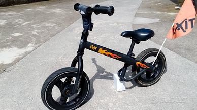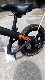 Fiammante bici di colore nero, senza pedali con cerchi a 3 razze, telaio robusto, bandiera rider, importata dall' Olanda. Non passa inosservata ed è utilissima per imparare l'equilibrio in bici senza passare dalle rotelle.