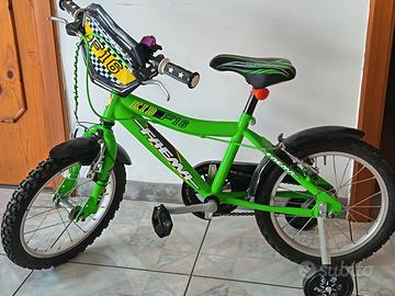 vendo bici colore verde bambino taglia 16 in ottimo stato munita di rotelle. Prezzo euro 50,00 Per info 3935516533