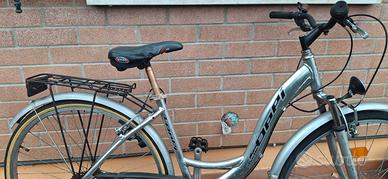bici in alluminio Fausto Coppi con forcella anteriore ammortizzata, cambio posteriore, portapacchi e cavalletto. funzionante e revisionata da poco, misura grande sia da donna che da uomo, preferisco consegna a mano