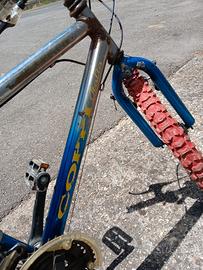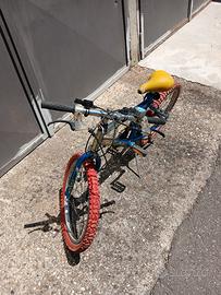 bicicletta Fausto Coppi the legend, vintage da 20 pollici, cambio shimano, usata, con parti da sistemare, freno posteriore, camere d'aria, presente qualche punto di ruggine, sella con punta danneggiata. copertoni buoni