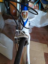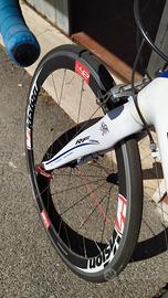 Tenuta ottimamente sempre in garage e sfruttata poco(purtroppo) vendo Formigli costruita direttamente in fabbrica a Firenze, misura 57,5 in carbonio, cambio manuale, gruppo SramRed ,ruote Vision da 42'come da foto, copertoncini Continental UltraSport. Possibilità altre due ruote.
