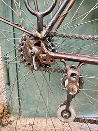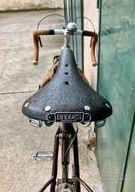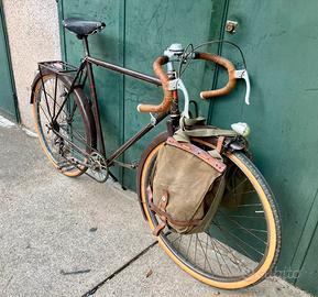 Bici francese da randonnée anni ‘40, con borse dell’epoca e sellino Brooks. Cambio appena sistemato con cavo sostituito. Gomme, camere e nastro nuovi. Perfettamente funzionante, pronta a partire per ciclostoriche.