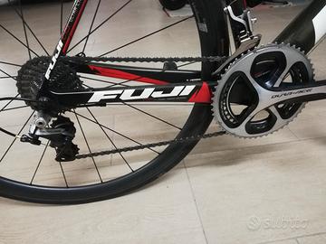 Bicicletta usata ma perfettamente funzionante. Eseguita manutenzione. Movimento centrale, catena, fili, nastro ecc. Nuovi. TAGLIA 54.5 Ruote c30 Vision Peso inferiore a 7 kg. Telaio carbonio c15 Componenti Dura ace. Da catalogo Fuji 2014.