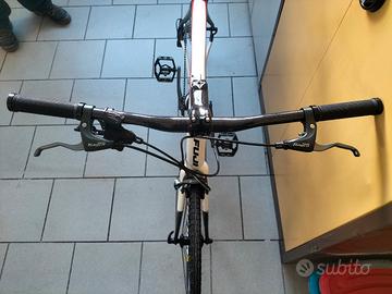 Vendesi per cambio progetto bellissima bici ibrida. Telaio monoscocca fuji carbon, tg 56, manubrio e reggisella in carbonio, trasmissione shimano con monocorona 1×10 , comandi cambio Shimano deore e freni Shimano Tiagra tutto nuovo. Cerchi mavic cosmic con copertoni da 28 mm nuovi