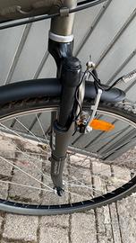 Ruote 700c, forcella anteriore regolabile in precarico, ammortizzatore posteriore regolabile in precarico, 21 rapporti, cambio shimano altus, usata pochissimo, ottime condizioni, taglia L