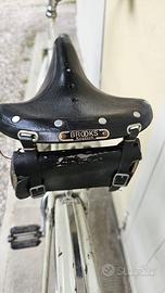 Bici Ganna Sport fine anni ‘30. Era da corsa ma e’ stata adattata per usarla da passeggio con pantaloni lunghi. E’ stato tolto il cambio e messo il contropedale