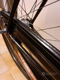 bici gazelle anni 50 tenuta perfettamente tutta originale con deco originali sella cuoio manopole legno cerchi decorati dinamo su mozzo anteriore cromature perfette vernice senza un segno coperture nuove da vetrina