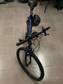 Bicicletta, mountain bike + borraccia e casco da bici.