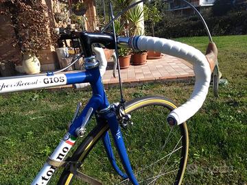Vendo bici GIOS Torino "Super Record" vintage conservata di inizio 79'. Telaio Columbus SL misura in altezza 54 c/f e in lunghezza 53 c/c. Monta gruppo Campagnolo Super Record/Nuovo Record con guarnitura pantografata Gt con pedivelle da 170 mm e corone 52/42. Manubrio e attacco 3ttt, sella San Marco. Le ruote sono dotate di cerchio Martano sull'anteriore e cerchio Nisi sul posteriore, entrambe a 32 raggi (tubolari) Ruota libera Everest oro con combinazione 13/21. Il telaio mostra alcuni segni del tempo ma considerando i quasi 47 anni si può definire in ottime condizioni così come i componenti perfettamente funzionanti. Pronta per partecipare a manifestazioni tipo Eroica. Vendo a 2000€ precisando che NON SPEDISCO. Scambio a mano. Se interessati posso vendere solo kit telaio/forcella a 650€. In tal caso posso anche spedire con spese a carico dell'acquirente.