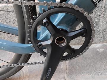 Gravel 3T Exploro Race Carbonio misura M-54; Guarnitura Shimano GRX meccanico monocorona: 40x11v (11/42); Ruote DT Suisse GR1600 Spline con coperture Schwalbe G.One All round da 35; Manubrio Gravel 3T alluminio, misura 41 centro centro con attacco manubrio 3T alluminio misura 90; Reggisella Carbonio; Pedivelle da 172,5 con pedali Gravel Look Deore XT.