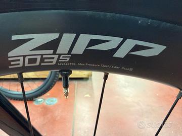 bici equipaggiata con maggiorazione ruote marca ZIPP modello 303s carbon