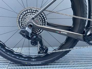 Bici Gravel artigianale per altezze tra 168-175 cm Limited Edition - PALU GREENTEGRATA [+] ANT colour scheme - Size 2 Bici gravel, taglia Size2, adatta a persone tra 168 e 178 cm (le geometrie sono disponibili nel nostro sito). Questa colorazione in edizione limitata esiste in sole quattro unità in tutto il mondo. Presenta una base nera glitter, una sfumatura titanio sigillata con finitura ceramica, una pinna squadrata e una forcella dettagliata con bricole bianche sotto trasparente lucido. Ogni livello, sfumatura e dettaglio è stato realizzato interamente a mano, tramite un lungo processo di mascherature, rifiniture e finiture per ottenere questo risultato. Montata con gruppo Sram Rival 13s XPLR AXS E1 electronic wireless 42T 10/46T, ruote Fulcrum Soniq in carbonio tubeless, gomme Pirelli Cinturato Gravel M da 45 mm, nastro manubrio Pro e sella Selle San Marco Shortfit gravel. Peso bici completa senza pedali e senza portaborracce 8,11 kg. Telaio progettato per essere bike-packing-friendly, ideale sia per lunghi viaggi avventura sia per gare o eventi gravel. Include garanzia completa per viaggiare con affidabilità e tranquillità. Pedali non inclusi.