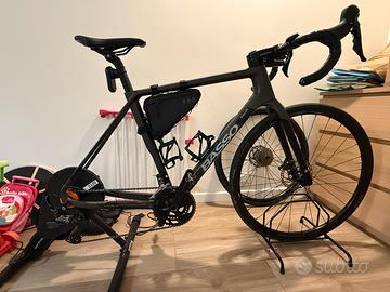 Acquista a gennaio 2022 nuova. Vendo per poco utilizzo. Colore nero in ottime condizioni perfetta sia per gravel che per strada, bici altamente performante. Taglia M (io sono alto 170 cm) sella San Marco prezzo 2300. Con rullo decathlon d100 e accessori Zwift vendo ad euro 2500. Opera d’arte targata Basso