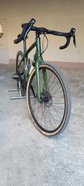 marca Adriatica Pesaro, modello Vanir cambio Shimano Tiagra 10x2 pignone 36/11 guarnitura 50/34 pneumatici 700x40 freni a disco meccanici 160/180 misura 47 S ( io sono alto 172) usata solo per viaggi (uno all'anno) ma sempre fatto manutenzione acquistata nel 2023. Fornisco anche il forcellino e un paio di pastiglie dei freni di ricambio.