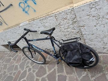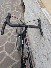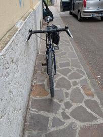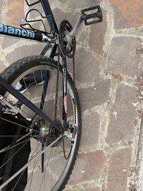 vendo bellissima bicicletta Bianchi anni 90. trasformata gravel.ottima per la citta o per viaggiare. in ottime condizioni come si vede in foto Taglia M. Telaio acciao leggero e molto scorrevole fino a 175-178 di altezza dovrebbe andare bene ruote 26, cerchi Mavic,coperture come nuove. Tenuto cambio originale 3x7. con possibilità di montare anche 8 velocità dietro. le leve shimano lo permettono. Nastro manubrio nuovo. Regalo borsa laterale in foto