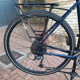 Stupenda bici Salsa Marrakesh perfetta per il cicloturismo senza limiti. Indistruttibile con telaio in acciaio. Vendo per esubero biciclette e mancanza di spazio. Anno 2021 Taglia 54 Telaio acciaio CroMoly a triplo spessore Trasmissione Shimano Deore Corona anteriore tripla 48-36-26 Pacco pignoni 9 velocità 11-40 Freni disco meccanici Avid BB7 Road Ruote cerchi WTB SX19 con copertoni Schwalbe Marathon Sella Brooks Incluso portapacchi originale Salsa