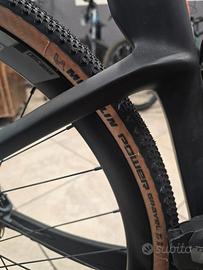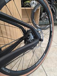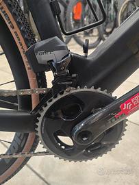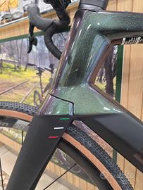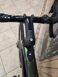 Bici con Telaio in Carbonio Colore Verde Iridescente Motore FSA nella ruota posteriore. Cambio Elettronico Sram Force Visibile a Donoratico Via Vecchia Aurelia 25 . Si può anche noleggiare ad € 50 x gg . Perfetta per fare il Tuscany Trail.