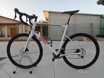 Vendo, bici BMC modello Road Machine 03, taglia 61 (mis. 187 - 196), colore bianco, telaio in alluminio, forcella in carbonio, ruote 700c in alluminio, coperture Pirelli Cinturato All Road, trasmissione 2x11, gruppo Shimano Tiagra 105, freni a disco idraulici d.160 Shimano, cannotto reggisella e piega manubrio in carbonio Deda Super Zero, sella Italia.