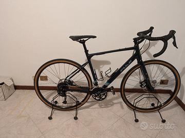 Bicicletta gravel in alluminio con forcella in acciaio adatta ai viaggi ed al bikepacking.