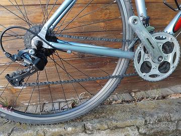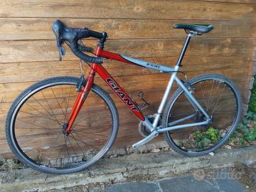 Vendo bici Giant gravel con ruote da 28 tassellate, rapporti 3x7 con comandi integrati nelle leve freno, taglia M,perfettamente funzionante. Posso consegnare fino a Torino dove lavoro.