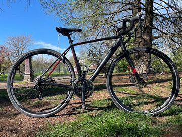 Ottima bici da viaggio in alluminio Taglia 52 Doppie leve freno Doppio portaborraccia borraccia Gruppi Shimano Sora 36-12 posteriore Doppio pedale (spd e flat) Cavalletto Predisposizione al doppio portapacchi Usata, telaio con graffi e qualche segno ma in buono stato