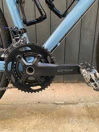 Vendo come da titolo bici gravel Triban RC 520. Sabbiata e riverniciata da professionista e con le seguenti modifiche: Shimano Grx 2x10 46-30 davanti e 11-34 dietro Cambio posteriore, anteriore e leve freno Shimano 105 Reggisella e attacco manubrio Thomson Elite Manubrio Sonder Bomber Pneumatici Pirelli Cinturato Gravel H Pacco pignoni, dischi freni, nastro manubrio, guarnitura e pneumatici con 500km. Vendo senza sella. Preferisco ritiro a mano ma posso spedire con spese a carico dell’acquirente. Per ulteriori foto e informazioni contattatemi! Prezzo trattabile.