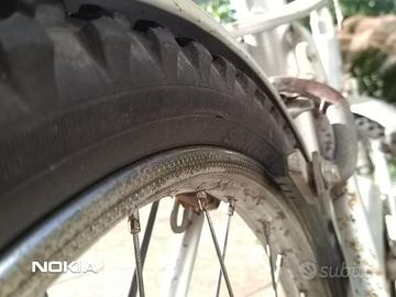 Bici Graziella Pieghevole, di colore grigio con cerchi da 20 e pneumatici 20 X 190 più grandi e tacchettati rispetto agli originali 20 X 175. La bici è vintage, è usata, presenta pochissimo di ruggine superficiale sul manubrio e telaio, la luce posteriore non si vede in foto ma è disponibile, 70euro non trattabile, non spedisco, possibile ritiro a Casarano, Gallipoli e città vicine