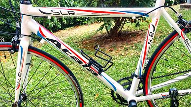 Bici ibrida con telaio da corsa in alluminio taglia M cambio shimano tourney 7V 14-28 con corone 50/34. Tutto in ottime condizioni, sostituiti copertoni nuovi MICHELIN Dynamic Sport. Tenuta in modo maniacale e usata pochissimo solo da mia moglie. Troppo ingombrante da spedire, possibilità di concordare consegna nel raggio di 50 km.